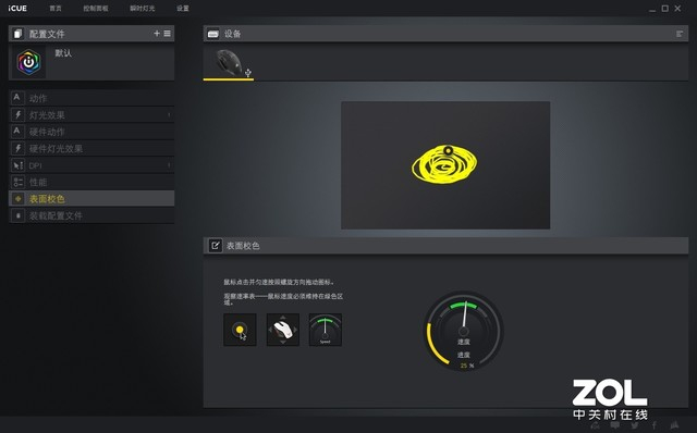 还有一件重要的事,在初次使用以及更换鼠标垫后,记得使用驱动内的表面校色功能进行校准。