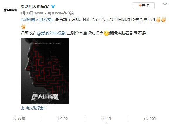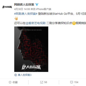 原标题:《唐人街探案》网剧登陆新加坡平台 今日全12集上线 来源:微博