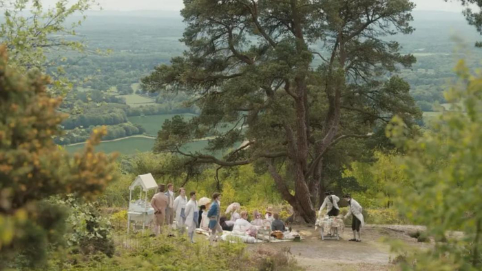 在当时西方尚为保守的社会风气下,野餐是男女难得的社交活动,野餐活动也借助异性的牵引,变得更为大众。醉翁之意不在吃喝,在于野餐后半程的业余戏剧歌舞表演。简·奥斯汀等英国作家笔下,在自然田园风光中野餐,成了故事剧情发生的触发点。