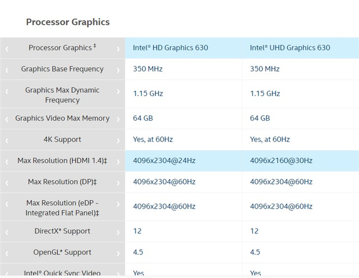 核显方面,两款UHD 630几乎完全相同。