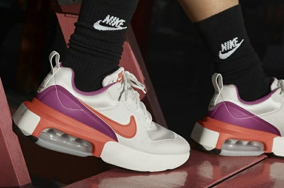 女性专属鞋款Nike Air Max Verona,从多款经典的1990年代鞋款中汲取色彩灵感,配色大胆鲜艳,包括来自首个女性Air鞋款Nike Air Verona OG版的白蓝配色、Nike Air Max 180鞋款的紫红配色。