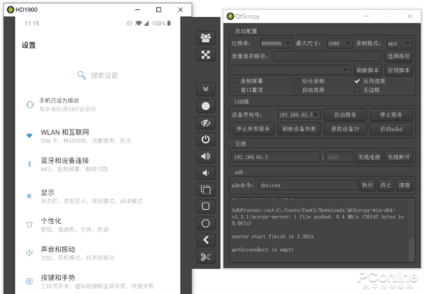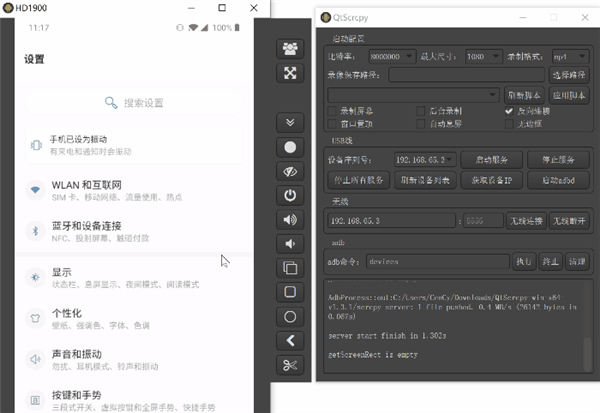 ·点击“启动服务”,QtScrcpy就会显示手机画面的小窗了,连接成功。