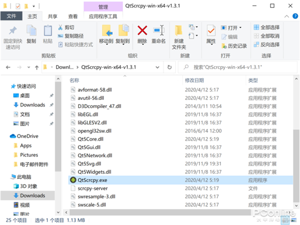 首先,我们到它的GitHub主页下载它,然后直接解压,就可以看里面有一个“QtScrcpy.exe”可执行文件。