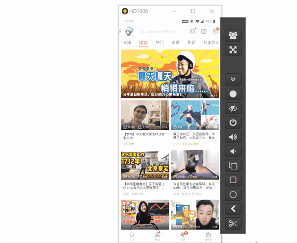 QtScrcpy用小窗可以显示手机画面,而这个小窗也是可以操作的。你可以用鼠标操控手机,也可以用键盘来输入文字,QtScrcpy更是在小窗旁边提供了下拉通知栏、后退等按钮,让你用PC更容易实现手机上的一些触控操作。