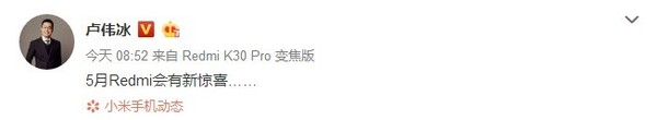值得一提的是,稍早一些时候,卢伟冰还发了一条微博称,“5月Redmi会有新惊喜。。。”被猜测可能是Redmi新品——Redmi 10X将要来了。现在卢伟冰又公布了Redmi Note8系列的销量成绩,这样来看,Redmi 10X将在5月发布应该是稳了。据悉,Redmi 10X就是此前小米在海外发布的Redmi Note9系列。