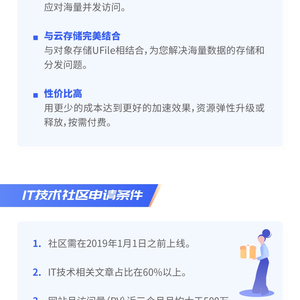 近日,UCloud优刻得面向百余家IT技术社区正式推出UCDN资源赞助计划,即日起至2020年5月31日,UCloud优刻得将为满足申请条件的技术社区提供为期一年、最高5万元的国内CDN赞助金额,从而为技术社区网站加速助力。