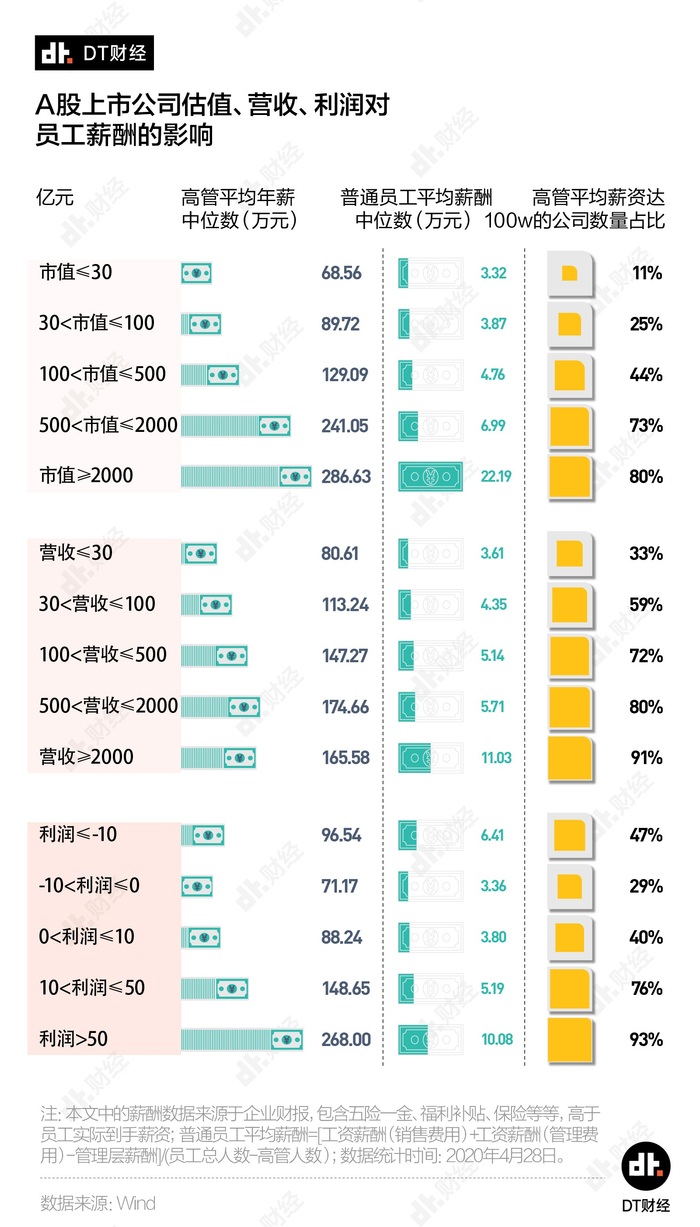 如果是在市值大于500亿元或是营收大于100亿元的公司当高管,那就有7成的概率能实现年薪百万的小目标。