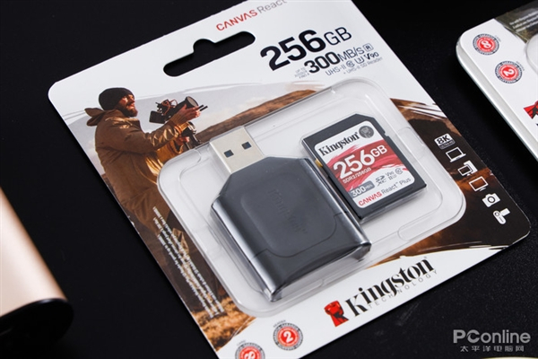 这次我们拿到的两张存储卡都是带USH-Ⅱ读卡器的256G版本,包装上跟金士顿自家其他系列产品并没有太大的差异,保持了金士顿一贯的低调风格,外包装只有最高读取速度的标识能充分体现出它的王者实力。