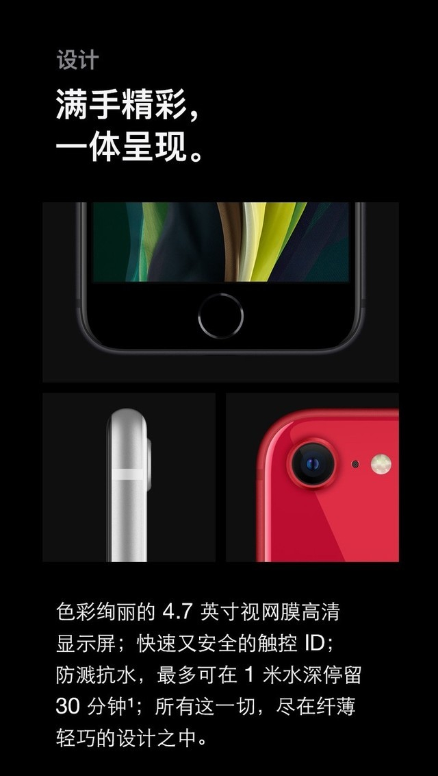 苹果iPhone SE 2(3GB/64GB/全网通) 小屏手机,A13仿生芯片,触控ID