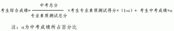 考生综合成绩根据初中学业水平考试成绩(即中考成绩)、专业素质测试成绩,按一定权重合成。其中,初中学业水平考试成绩所占权重不低于30%,不高于90%。