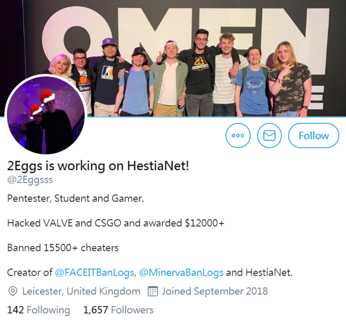 出事前的2Eggs推特账户,将帮助V社打击作弊视为自己的骄傲