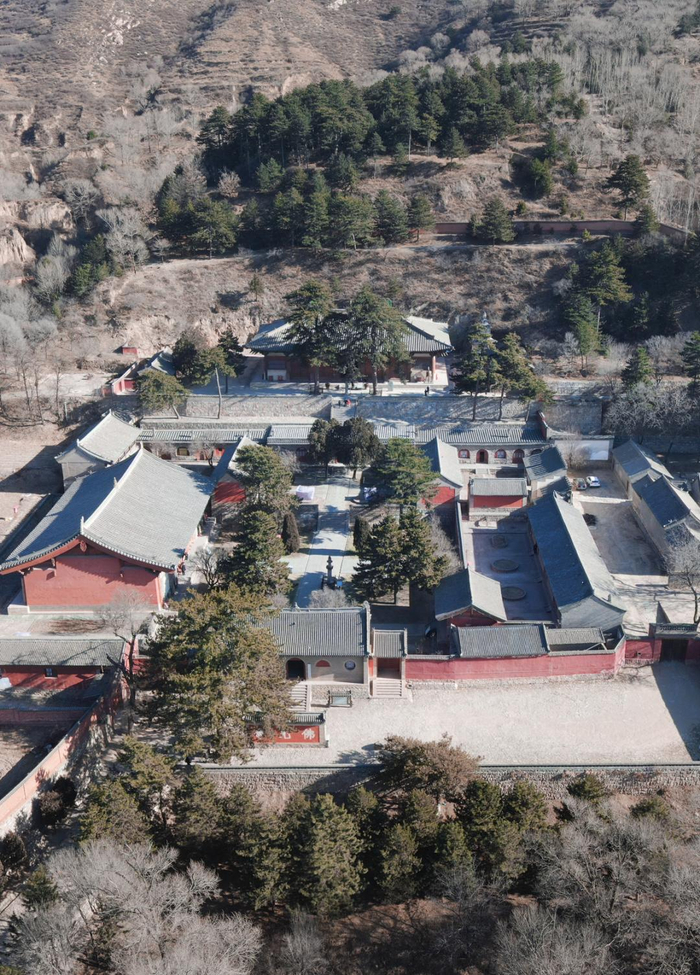 ▽佛光寺建筑全景,东大殿为最上方两颗古松遮挡的建筑,使得大殿隐于山林之间,难见真容| 摄影师@杨国军