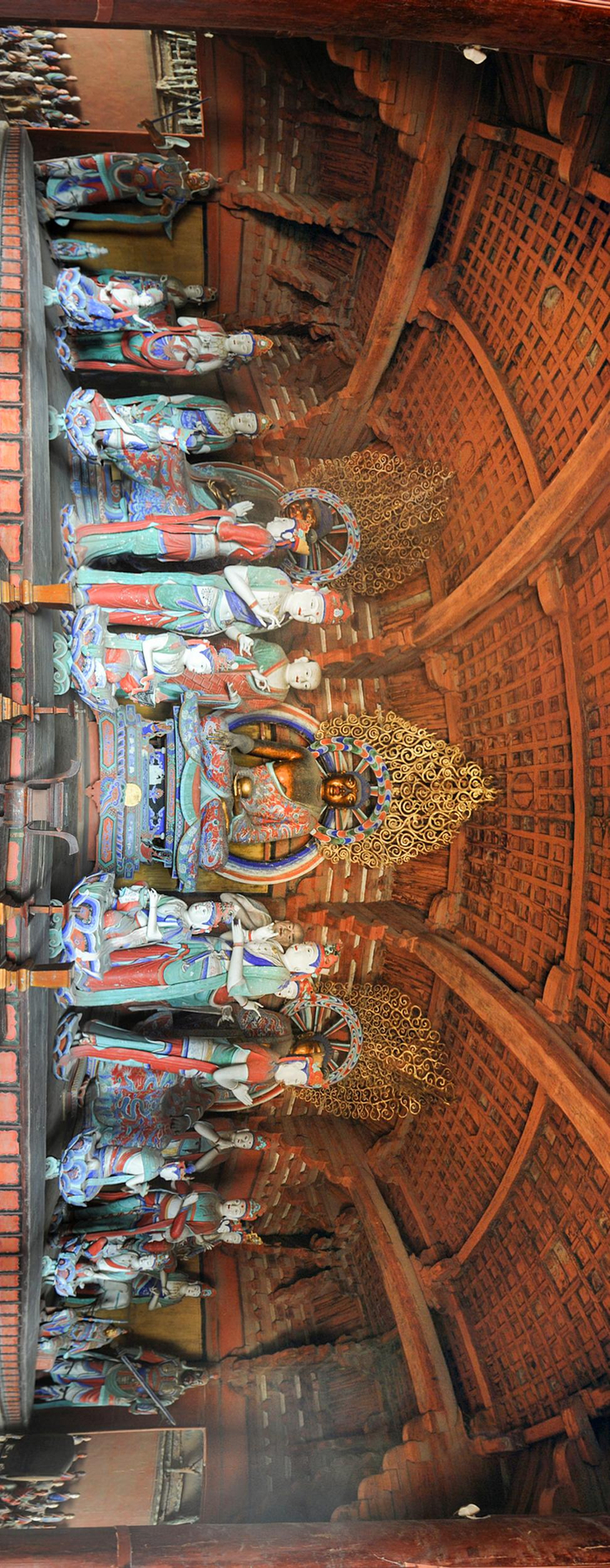 ▽佛光寺大殿内佛坛上的唐代塑像| 图片源自@VCG,横屏观看,更有气势