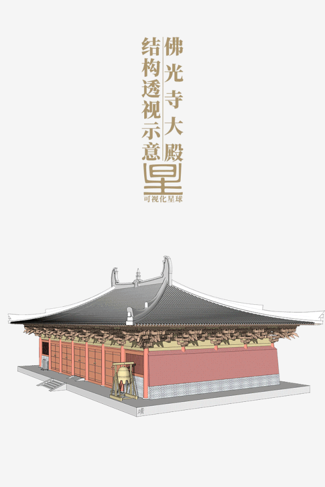 ▽佛光寺大殿解剖示意| 制图@张靖/可视化星球