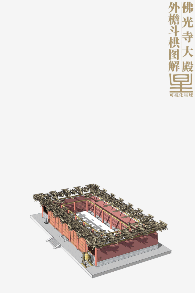 ▽佛光寺大殿外檐柱头斗拱搭建示意| 制图@张靖/可视化星球
