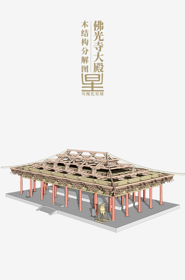 ▽佛光寺大殿木结构搭建示意| 制图@张靖/可视化星球