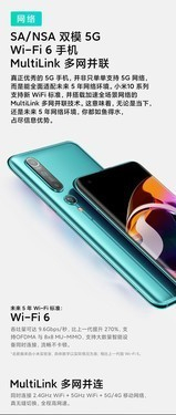 其他网络参数 | WiFi 6最大吞吐量:9.6Gbps,SA/NSA 5G双模 |