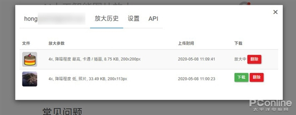 Bigjpg支持批量离线放大,等你忙完其他事,再去“放大历史”里下载即可。