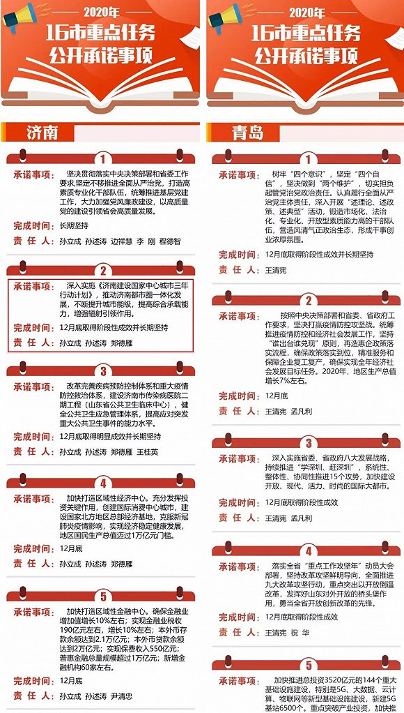 4月13日,济南向社会公布20项2020年重点任务公开承诺事项,第2项就是国家中心城市。“深入实施《济南建设国家中心城市三年行动计划》,推动济南都市圈一体化发展,不断提升城市能级,提高综合承载能力,增强辐射引领作用。”