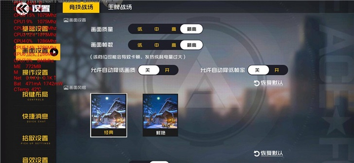 《王牌战士》最高支持90FPS,不过需要强调一点,在游戏内,主角死亡回复帧率会掉到45FPS(测帧软件判定为掉帧),游戏总的平均帧率是包含死亡回放的,所以总的平均帧率参考价值不大。