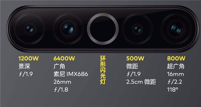 魅族17采用了6400W四摄全场景影像系统。具体来看,后置四摄包括一颗6400W像素的索尼IMX686主镜头、一颗800W像素118度的超广角镜头、一颗1200W像素景深以及一颗500W像素微距镜头。