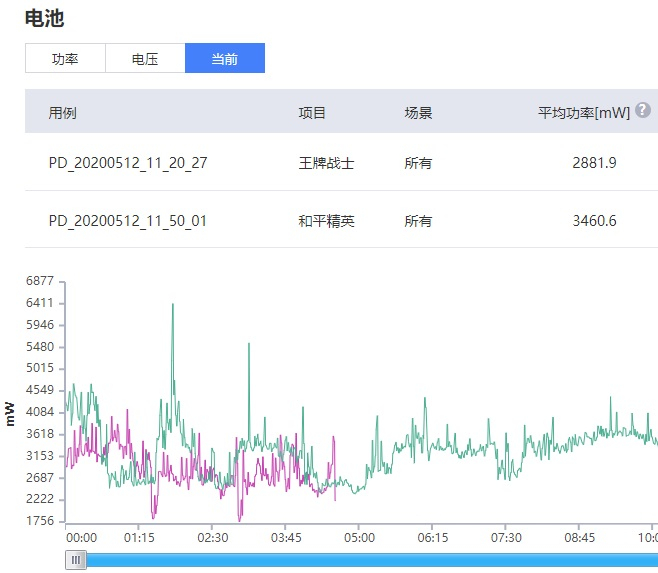 在两款游戏中,我们测得在WiFi条件下,魅族17游戏的平均功率分别是2881mW和3460mW。