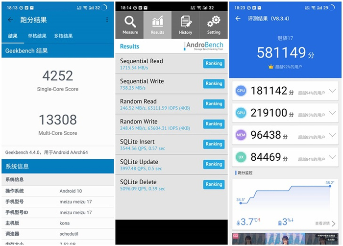 按照惯例,IT之家这里通过安兔兔、GeekBench等软件测试了魅族17的跑分性能,供大家直观了解。