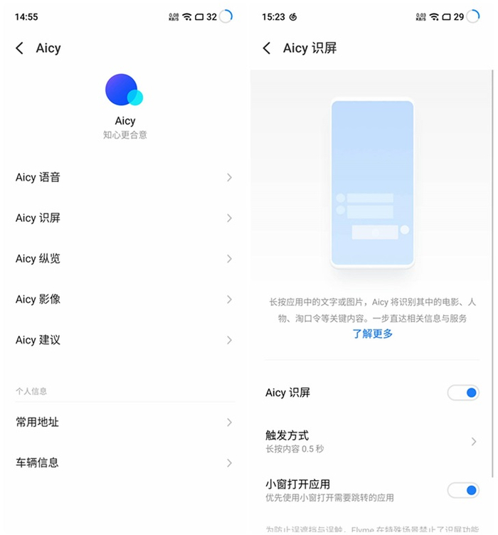 这里主要围绕“小窗模式2.1”和“Aicy”智能语音助手讲讲。