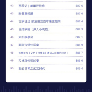 有声书主播成直播新势力,叶听风、有声刘忙、冬菱扇等有声书主播进击直播红人榜TOP20。今年以来,众多有声书主播在“当家大主播陪你读”、“说书人”等系列直播中,表现出彩,与听友直播交流,打通主播与听众互动的桥梁,增强双向的精神陪伴体验,让有声书录制过程变得更加温暖和使命感。音频内容类型的多元化,以及音频内容使用场景的多元化,为喜马拉雅主播的发展扩大了土壤。