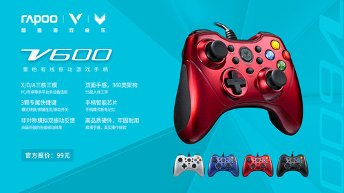 近日,国产外设领军品牌,实力大厂上市企业——Rapoo雷柏,推出了V600有线振动游戏手柄2020版,延续了经典的V600造型,换新而不换芯,缤纷4色打造一道靓丽的新风尚,依旧延续99元的经典价格,为手柄市场注入了一股强劲的色彩炫风。