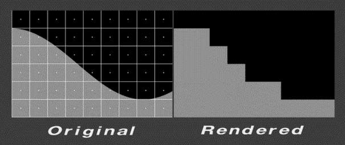 当图像经过傅里叶变换后,图像内的尖锐边缘和较小对象通常对应于高频率。而光栅显示器仅能重现低频率。因此,频率的上限取决于光栅显示器的分辨率。在采样过程中,高于光栅显示器可复现范畴的频率将难以分辨,或者说出现锯齿。