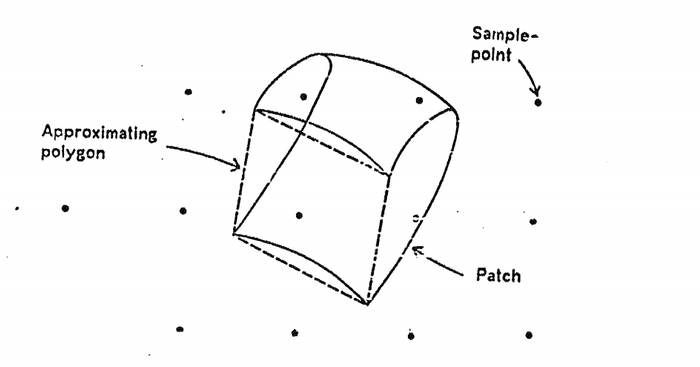 现在,我们已经了解了 Catmull 的大部分贡献。生成弯曲 patch 的画面需要了解:(1) 曲面上点和显示器光栅元素的对应关系;(2) patch 的隐藏面;(3) 应在光栅显示器上得到显示的光强度。