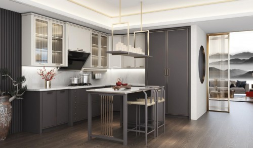 这样的中式装修效果极考验设计师对中式风格的熟练运用和对中国传统装饰建筑的文化理解。而志邦家居通过独特的现代设计语言来表达东方韵味传承国学经典,内部设计采用中式传统结构,使储物变得井井有条;外部将现代金属元素和兰亭朱红烤漆结合在一起,这两种色彩的碰到形成了高贵典雅,奢而不华的整体风格。