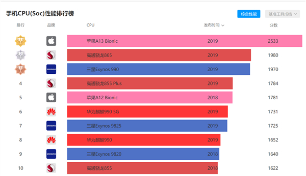 另外值得一提的是,分析师郭明錤在最新投资报告中称,苹果今年底前会拿出10.8寸iPad和8.5~9寸的iPad mini。尽管下半年会有5nm的A14,可用在iPhone XS/XS Max上的A12依然能打,从我们快科技天梯榜来看,A12的综合性能仍旧排在麒麟990 5G、骁龙855之上。
