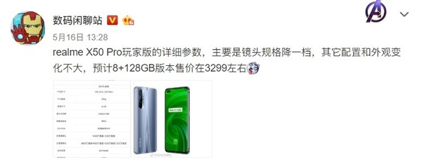 realme真我X50 Pro玩家版详细参数曝光(图源微博)