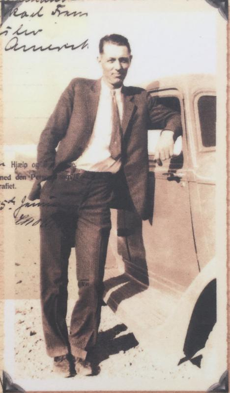 也许以前就叫这个名字,只是我不知道而已。我注意到布告栏里放了张黑白老照片,一个穿黑西装的高个子男人,脸很英俊,斜靠着一辆车。乍一见,我觉得和他似曾相识。照片下面有一行小字——甘那﹒萨德,二十世纪初的丹麦移民,这个公园的前身是他的羊圈。