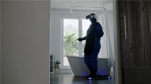 除了对现实世界中陌生人之间的情感问题进行了直面,克雷格也探讨了上传到数字世界的人与留在现实生活中的伴侣,在处理一些私密问题方面的困惑。现在已经有类似感知手套这样的设备能够配合 VR 设备使用,形成一定的触摸反馈。在 Upload 中,假设你想要获得真人般的体验,另一方必须要穿上一套像潜水服那样的情趣套装,里面有各种硅胶触手提供模拟感知,还要缩在浴缸里才行。