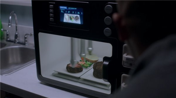 而对人类最重要的「食」,克雷格竟然造出了一家叫做 Google Samsung 的公司。当然剧中类似这样,将大家耳熟能详的科技公司进行拼接组合的案例太多了,唯有 Google Samsung 这个倒是还蛮符合常理的。在 Upload 的世界里,这家公司将 3D 打印食物变成了自己众多业务中的一项,而一位男性角色甚至提到,他正在打印的这道菜只有 Google Samsung 提供。所以未来不管怎么变,「独家供应」这个词还是存在的。