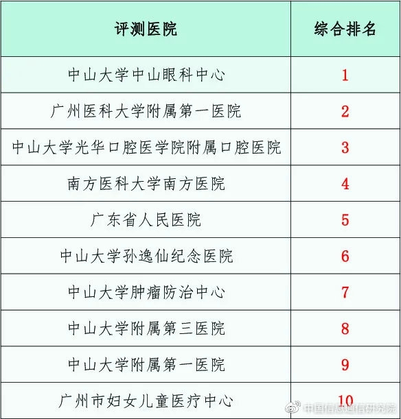 广州市十大医院网络质量综合排名(图源微博)
