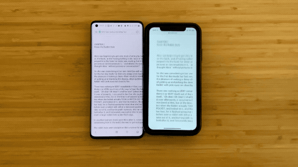 目前高刷新率屏幕已经成为旗舰机的标配,通过对比可以看出,60Hz刷新率的屏幕在画面滚动的过程中会有明显的“拖影”,而120Hz刷新率的一加8 Pro看起来则会显得更为流畅。通过慢动作也能看出,同样的内容在一加8 Pro下滚动时更为顺滑,在60Hz刷新率的iPhone上则有明显的刷新顿挫感。