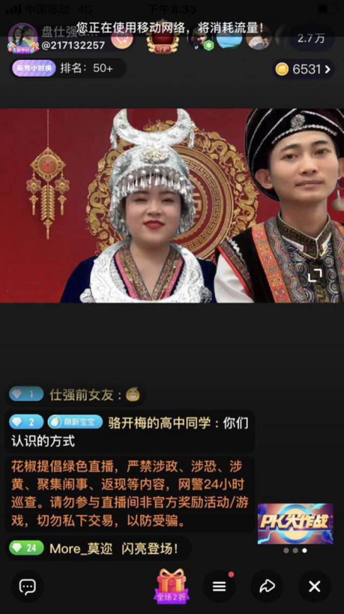 相较于4月18日的“云婚礼”首期,花椒直播“云婚礼”第二期将新人群体从一对升级到多对,场面更为宏大,婚礼场景也从“欧式梦幻城堡风”变为“中式古典风”。与之相对,整个520云婚礼流程也尽显中国传统婚俗,亲友“云婚宴”甚至“云闹洞房”等环节都在线上呈现,形成“传统婚俗云端化”的全新观感。