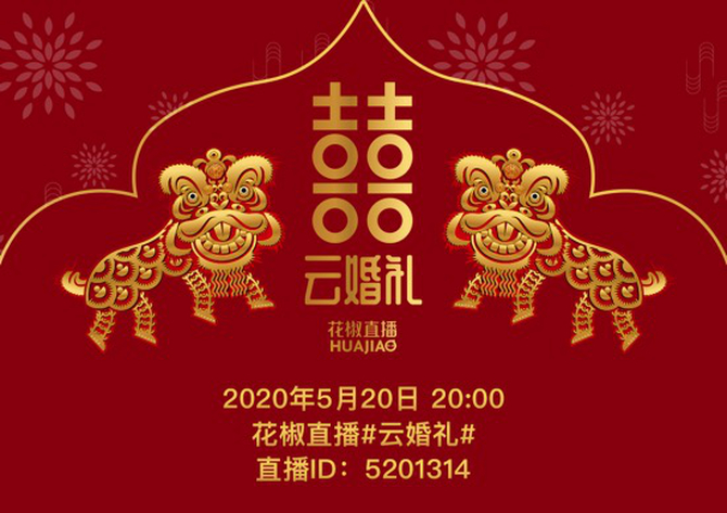 5月20日,花椒直播“云婚礼”将迎来第二期,多对新人以“线上直播中式婚礼”的方式,在“520表白日”共结连理。