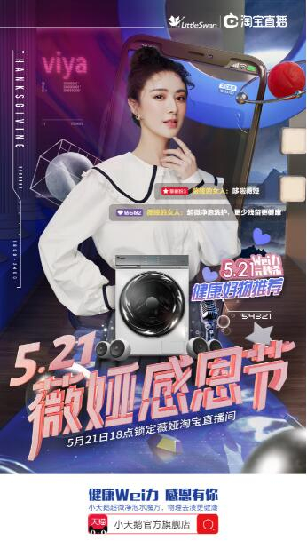 今年的5月21日,是薇娅为粉丝举办的第4次狂欢盛典,而这次除了专驾接送、红毯走秀、定制伴手礼、专属造型师等保留节目外。小天鹅旗下爆款产品——超微净泡水魔方10公斤洗烘一体除菌智能洗衣机,直播当天也将与哆啦薇娅同框出镜,并以5.21元的秒杀价格上架!限量42台,先到先得!