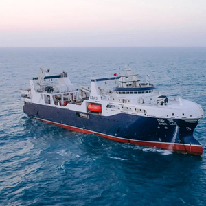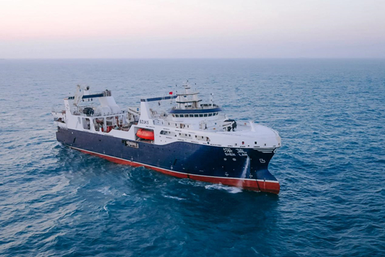 “深蓝”号渔业捕捞加工船是我国第一艘新造大型拖网渔业专业捕捞加工船,主要用于南大洋渔业捕捞。该渔业捕捞加工船总长约120米,型宽21.60米,设计吃水7.3米,设计航速15节,可满足ICE-A冰区(冰厚度0.8米)及-25℃低温环境的营运要求。