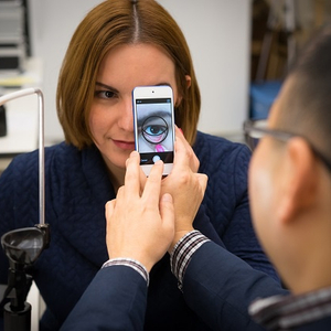 在通过摄像头拍摄了眼睑照片之后,医生会定期评估红肿程度,然后使用自带的软件算法来处理运算。