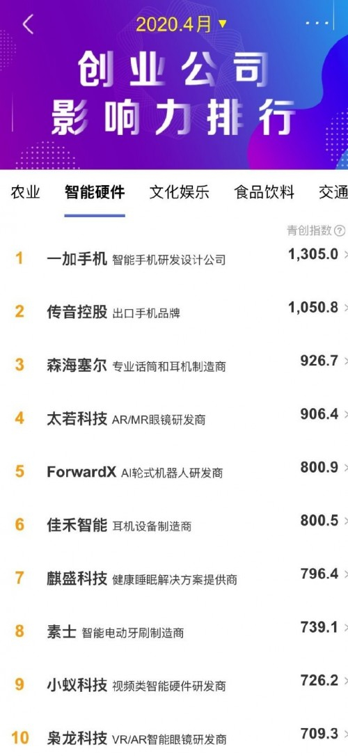 智能硬件公司最新排行:一加夺冠!小蚁科技进入前十!
