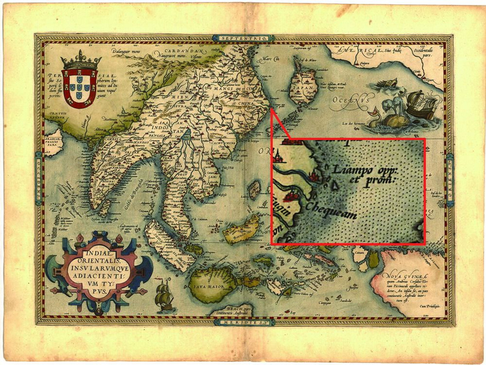 1570 年比利时人奥特硫司所绘东亚地图上的宁波。图片来源:宁波地方文史爱好者水银供图