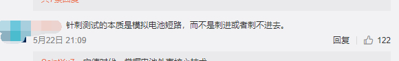 对此,有网友表示:你们确定是认真的在做针刺试验吗?还是在自黑、针刺测试的本质是模拟电池短路,而不是刺进或者刺不进去。你怎么看?