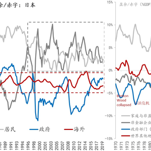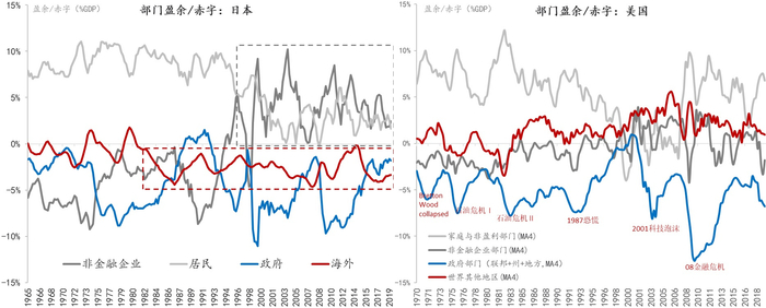图1:宏观四部门的盈余/赤字关系(日本与美国) 数据来源:日央行与美联储,flow of fund account,东方证券