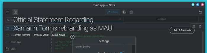 微软在 Build 2020 大会上宣布了 MAUI 项目(.NET Multi-platform App UI),此项目旨在在单一的代码库中提供跨平台的原生 UI,目标是希望 .NET MAUI 成为 .NET 6 的一部分并作为 Xamarin Forms 的进化版。微软还计划在未来将基于 Xamarin.Forms 的现代项目从 Xamarin.Forms 转移到 .NET MAUI。